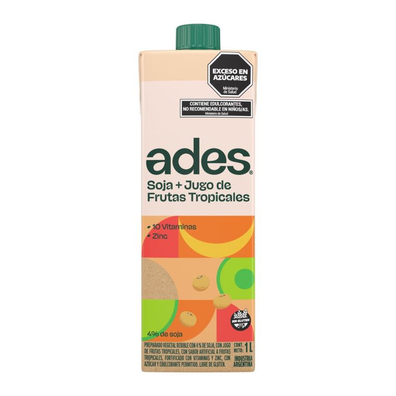 Ades Soja + Jugo De Frutas Tropicales 1 Lt.
