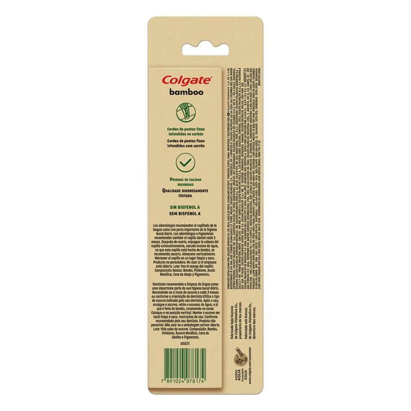 Conoce la nueva tecnología amigable con el medio ambiente de los cepillos de Colgate. La marca se sensibilizó con el tema y creó un Cepillo de dientes a base de Bamboo, sustituyendo por completo el plástico de su producto. Pensando siempre en su principal objetivo, el cual es mantener una higiene impecable en la boca, Colgate no sólo pensó en el diseño, sino que creó cerdas más suaves, con infusión de carbón y sales de Bamboo, las cuales te darán una nueva experiencia de limpieza bucal. Colgate tiene para ti esta presentación en donde ahora tendrás la opción del combo de dos piezas. Recuerda que para tener mayores beneficios realiza tu cepillado por al menos dos minutos.