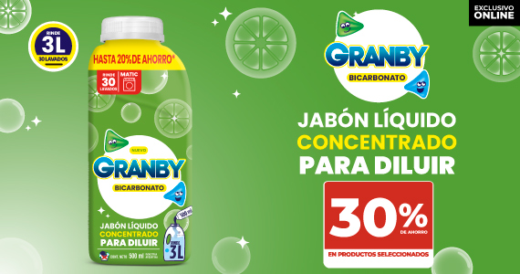 Jabon Liquido Concentrado Para Diluir Granby Baja Espuma Limon 500 Ml.