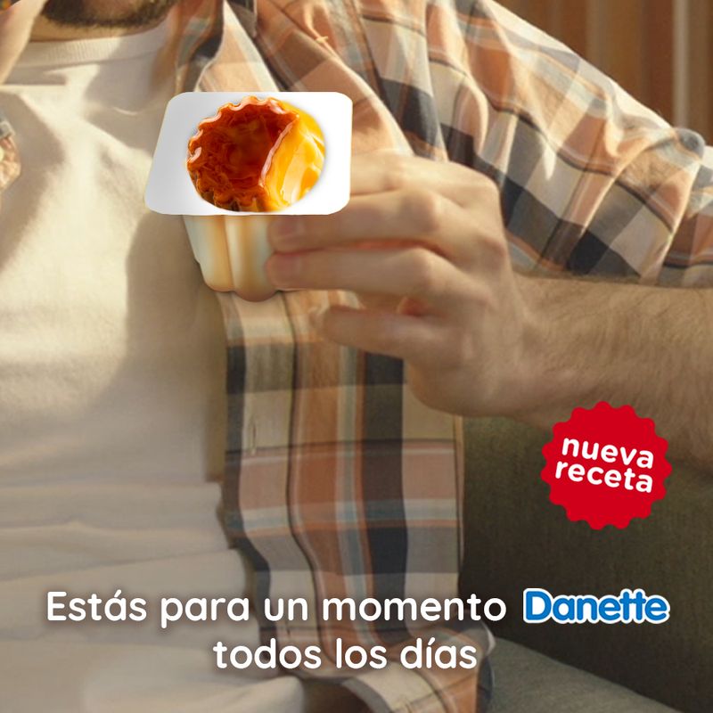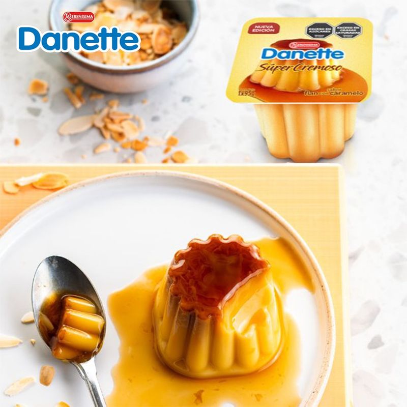 DANETTE flan, súper cremoso, sabor vainilla con caramelo. ?