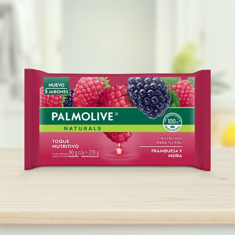 El jabón de tocador Palmolive Naturals Frambuesa y Mora/Zarzamora Toque Nutritivo, con ingredientes 100% de origen natural, deja tu piel radiante y humectada. Ayuda en el cuidado de la piel al mantener su humectación natural para una sensación de Nutrición.