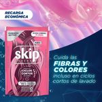 Cuidá tu ropa con Skip Cuidado Activo: su fórmula concentrada mantiene los colores vibrantes y protege las fibras de tu ropa, ¡manteniéndolas como nuevas, incluso en ciclos de 15 minutos! Descubrí el único jabón líquido concentrado diseñado para ciclos cortos de lavado. ¡Con nueva tecnología que combate el mal olor! Su nueva fórmula tiene activos concentrados de limpieza de acción rápida que eliminan la suciedad y el mal olor. Con Skip Cuidado Activo, lo rápido ahora es mejor: ¡prendas limpias y cuidadas incluso en ciclos de 15 minutos! Cuidá tu ropa con Skip: su fórmula concentrada mantiene los colores vibrantes y protege las fibras de tu ropa, ¡manteniéndolas como nuevas! Su fórmula concentrada rinde 20 lavados. Trasvasá el sachet a la botella de Skip Cuidado Activo y dosificá directo sin necesidad de diluir. Llená una tapita para tener un lavado. Skip para ciclos cortos remueven la suciedad invisible de tus prendas, sin dejar residuos.