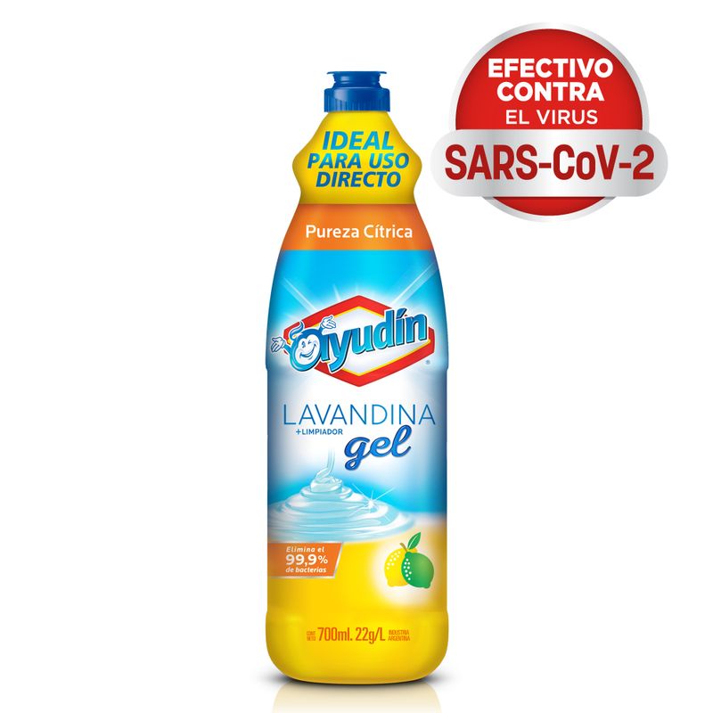 La lavandina en gel Ayudín aroma Pureza Cítrica contiene un agradable aroma que sustituye el olor de la lavandina tradicional, manteniendo todo su poder desinfectante, limpiador y blanqueador. Elimina el 99.9% de hongos, virus y bacterias, desinfecta cada superficie, blanquea y desodoriza. Gracias a su fórmula más espesa, este producto permite una limpieza sin complicaciones, es ideal para superficies pequeñas y se aplica en lugares específicos. El producto puede usarse sobre pisos, bañeras, inodoro y otras superficies duras y no porosas de la cocina o el baño. La limpieza importa y la hacemos entre todos.