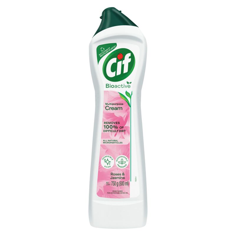 El nuevo Limpiador en crema CIF Bioactive Rosas y Jazmines (750 gramos) contiene micropartículas de origen natural que ofrecen una máxima limpieza de las superficies con mínimo esfuerzo. La limpieza de CIF Crema es imbatible en muchas superficies, ya que brinda una limpieza profunda y remueve fácilmente las suciedades más difíciles,, haciendo que todas tus superficies queden increíblemente brillantes. Remueve 100% la suciedad difícil gracias a su única tecnología BIOACTIVE. Este producto de limpieza contiene una fragancia a rosas y jazmines biodegradable para que cuides tus superficies al mismo tiempo que el medio ambiente. Además, su botella está hecha con plástico reciclado. Con la misma efectividad y rendimiento que ya conoces, revela la belleza de tus objetos una y otra vez. Algunas de las superficies de aplicación son: enlozadas, cromadas, de acero inoxidable, esmaltadas, de porcelana, de plástico, de goma, cerámicas, de cuerina, entre otras. Te sorprenderás al ver cómo los productos de limpieza de CIF Crema pueden remover de manera fácil las suciedades más difíciles del baño, la cocina, y hasta objetos tan sorprendentes como un par de zapatillas. Para su correcto uso: aplique una pequeña cantidad de Cif Crema sobre un paño húmedo (tipo Cif Ballerina) o directamente sobre la superficie a limpiar. Luego, simplemente, limpie la superficie y enjuague; Cierre bien la tapa después de usar. Para obtener resultados más brillantes, repase con un paño seco luego de enjuagar. Revela la belleza de todos tus objetos, con la misma efectividad y rendimiento que ya conoces. Ingresá a www.cif.com.ar y conocé los productos de limpieza CIF. Chau suciedad, bienvenida belleza.