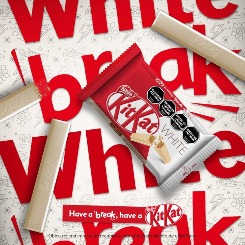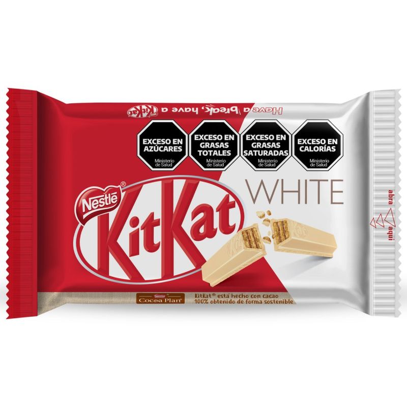 Unidad de 41,5 gramos KitKat White es un delicioso chocolate de 4 barritas de oblea crocante, cubierto de chocolate blanco. ¡El snack ideal para aquellos que valoran sus breaks! Oblea rellena con cacao recubierta con chocolate blanco de cobertura. Contiene grasa vegetal además de manteca de cacao. ¡Have a break, Have a KitKat!