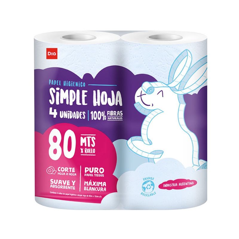 Papel Higiénico Simple Hoja 80mts 4 Ud.