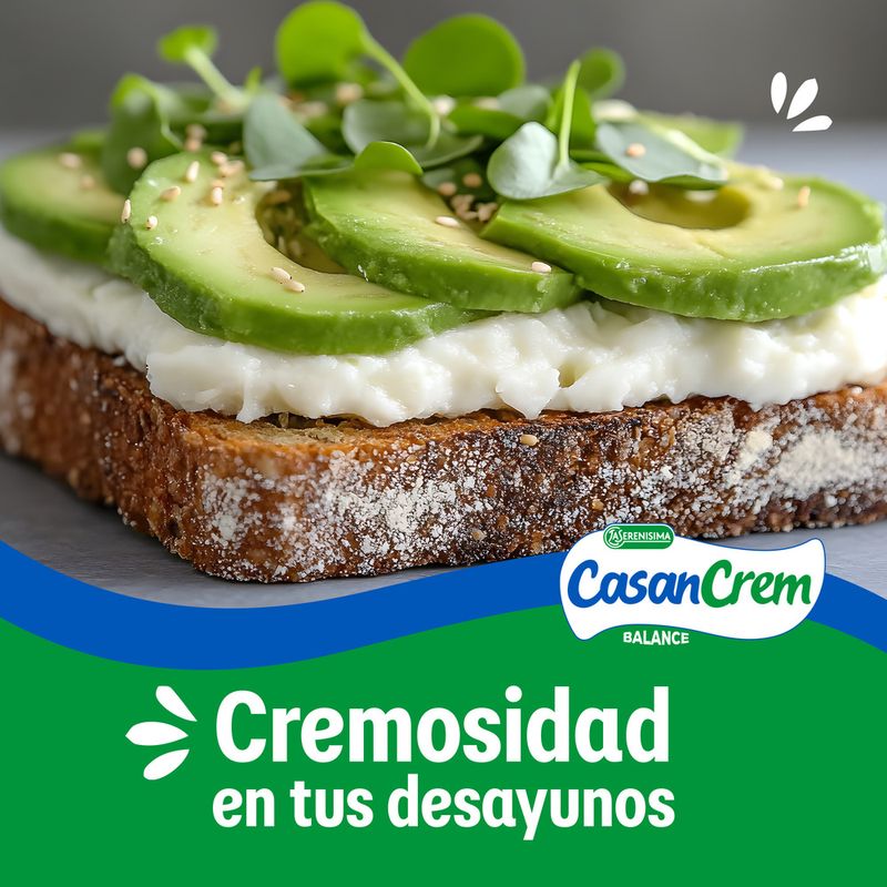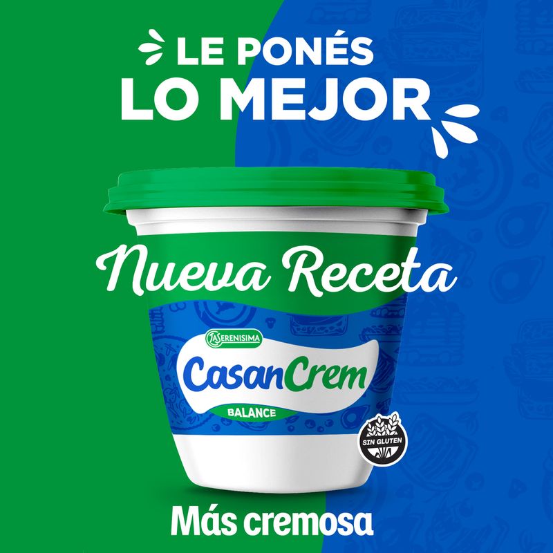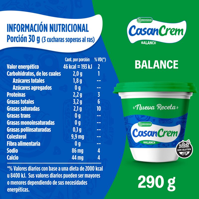 En el desayuno o en la merienda, probalo también en el almuerzo o cena. Con CasanCrem, comidas más ricas. UNTABLE 290gr. Queso blanco balance libre de gluten.