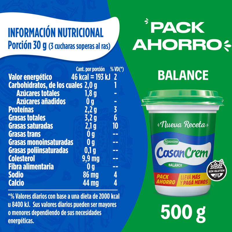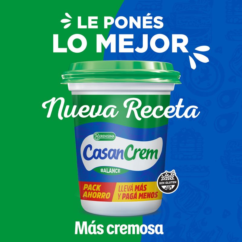 En el desayuno o en la merienda, probalo también en el almuerzo o cena. Con CasanCrem, comidas más ricas. UNTABLE 500gr. Queso blanco libre de gluten.